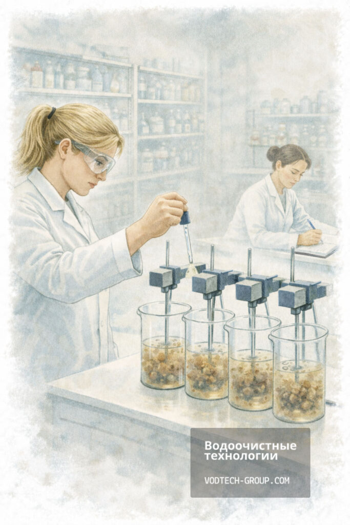 - Результат: для механических фильтров – грязеёмкость, потери напора, режим обратной промывки; для сорбентов (уголь) – динамическая сорбционная ёмкость, время до «проскока» загрязнений; для ионообменных смол – рабочая обменная ёмкость, скорость истощения, параметры регенерации.