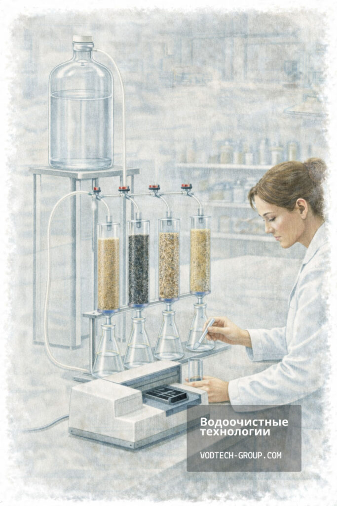 - Задача: испытать различные типы фильтрующих материалов (кварцевый песок, антрацит, сорбенты, ионообменные смолы) непосредственно на Вашей воде.